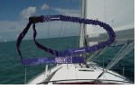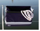 ManntågsbagBästa platsen för förtöj-ningstampar och skot när de inte används. Den fästes runt manntåget med kardborreband. Bot-ten av kraftigt nät gör att vatten snabbt rinner av.